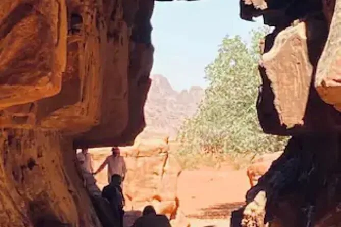 Your experience includes entry to Wadi Rum Protected Area plus all meals: traditional Bedouin lunch cooked over fire during your jeep tour, dinner at camp under desert stars, breakfast with sunrise views from your private tent accommodation — all led by an English-speaking local guide before returning to Wadi Rum Village next morning.