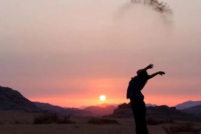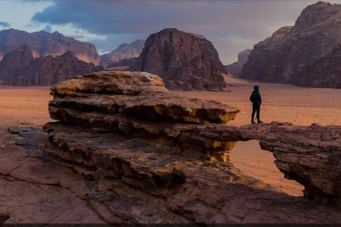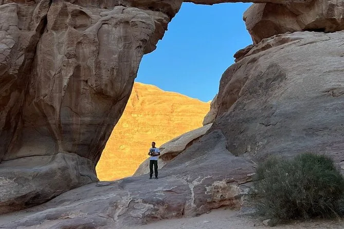 The afternoon blurred into stops: Little Rock Bridge (easier to climb than it looks), Mushroom Rock (which really does look like a mushroom if you squint), and then Burdah Rock Bridge glowing gold in late sun. The silence out there is thick — except for birds or sometimes laughter echoing off stone. By sunset we sat on mats while Fawaz brewed more tea over a small fire. The sky went from orange to purple so fast I barely caught it on camera. That’s one of those moments I still think about when things get noisy back home.