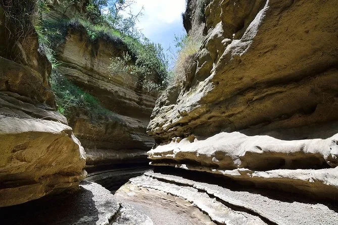 After about 8 kilometers (I checked my phone because my legs were starting to notice), we reached the gorge. The sun was already getting strong — Peter said it always feels hotter down there, and he was right. The rocks felt warm if you brushed them with your hand. We scrambled along narrow ledges while Peter explained how floods shaped these walls (and warned us where not to step). It was quieter than I expected; just our footsteps echoing and sometimes someone laughing nervously when the path got thin. Honestly, I was glad you can ask for a ride back if you’re tired — I took them up on it after the walk, no shame.