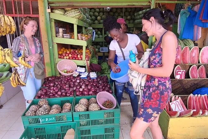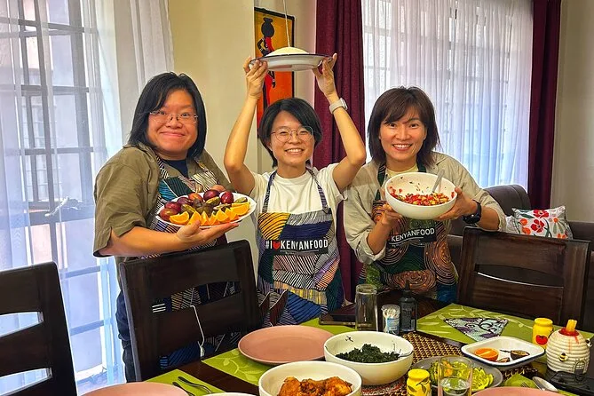 Your day includes bottled water throughout, grocery shopping with your host (with pickup), all ingredients needed for three traditional Kenyan dishes tailored to your dietary needs if requested ahead of time, plenty of chances to chat with locals at the market—and you’ll get to take any leftovers home after sharing lunch around your guide’s own table.