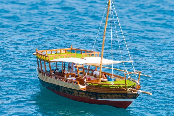 A Swahili breakfast is served onboard plus a seafood (or chicken/vegetarian) lunch with drinks.