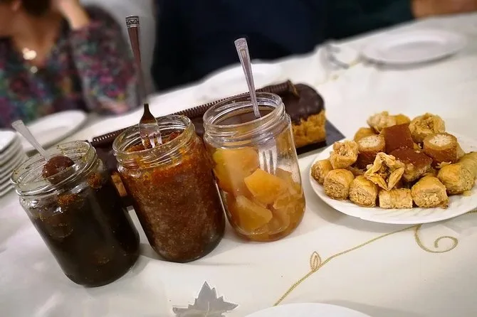Between mixing and tasting, we swapped stories about food and travel. Tania explained why she only uses certain spices for her mezza—apparently za’atar from their neighbor is way better than anything at the supermarket. The meal itself? Five dishes spread out on the table: creamy hummus, mloukhieh with lemon squeezed over top, those meatballs in tangy yogurt sauce. Dessert was simple: coffee so strong it could wake the dead, homemade jams (the fig one was my favorite), and fruit picked that morning by her dad. The whole experience felt less like a class and more like being part of their family for an afternoon.