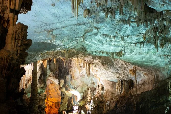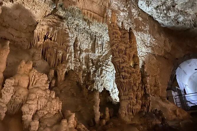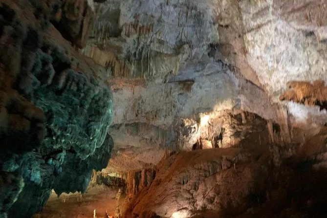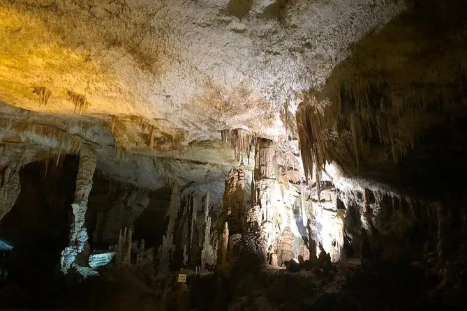The cave is cool and damp; comfortable shoes and a light jacket are recommended.