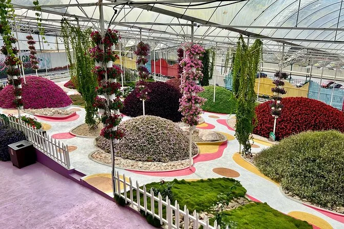 We started at a strawberry farm where they let us pick our own. I tried to be strategic about it but honestly just ended up eating half of them before we even left. A little girl next to me kept giggling every time her mom tried to pronounce “Cameron Valley.” After that came the Agro Market — which is sort of like a mashup between a farmer’s market and a mini theme park? There were flower mounds everywhere and these weirdly adorable cacti lined up like tiny soldiers. I wandered off for a bit to see the aviary (the parrots are louder than you’d think), then got lost trying to find the “Mini Santorini” corner. Not sure why it’s called that, but there’s blue-and-white paint everywhere and some love locks hanging off a fence.