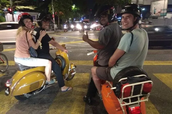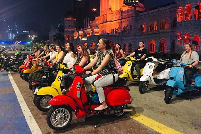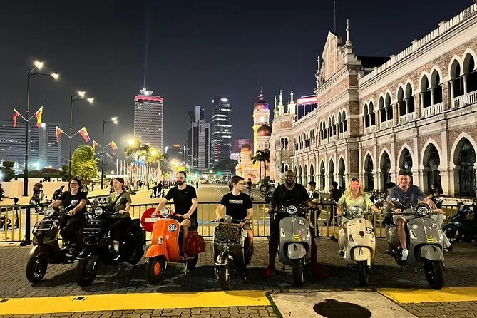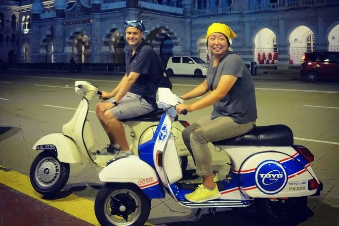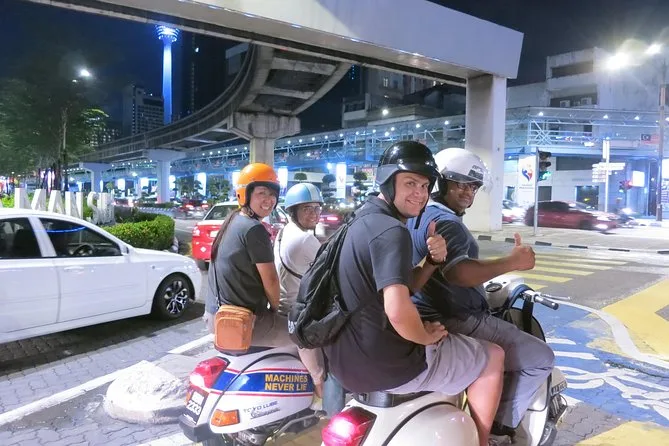 You’ll ride through Kuala Lumpur’s wild night streets by Vespa with a local driver, tasting Malaysian-Chinese noodles, spicy Malay dishes at a warung, and Indian treats in Brickfields’ Little India. Expect laughter over new flavors, sudden rain showers (ponchos included), lively markets and music drifting through the air as you see KL after dark in ways you’d never get on foot or by car.