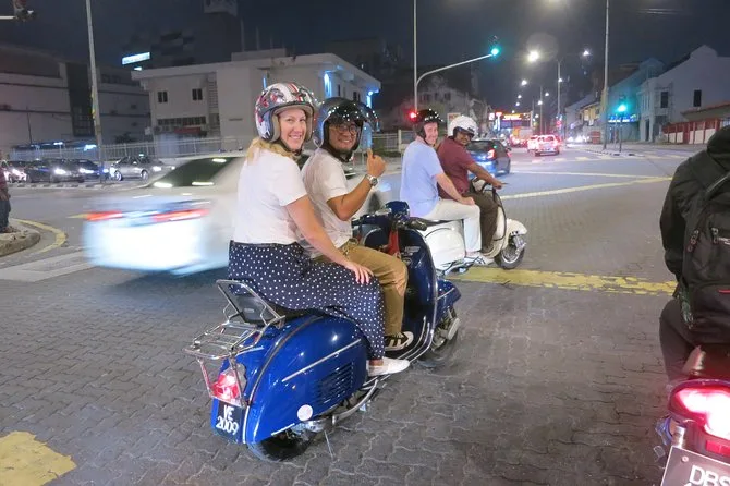 Your evening includes private transportation on a Vespa scooter with your own driver through Kuala Lumpur’s neighborhoods after dark; all safety equipment like helmets and vests; dinner featuring Malaysian-Chinese noodles, Malay dishes at a warung and Indian specialties in Brickfields; plus bottled water, soda or pop, alcoholic drinks if you want them; ponchos if it rains; first aid kits handy; and drop-off either back at your hotel or at a local music spot if you’re not ready to call it a night yet.