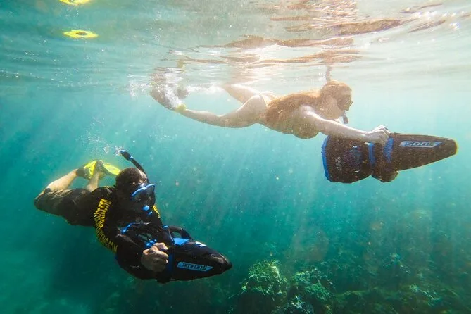 Your time includes an underwater scooter rental for either 10 or 20 minutes at your choice plus a snorkeling mask provided by the crew—no need for fins or extra gear—along with basic instruction before heading out into Maafushi’s clear waters at your own pace.