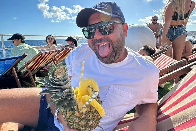 Your day includes all taxes and fees covered, free use of deck chairs (first come first serve), access to restroom facilities and slide onboard, plus landing fees for stops along Comino island. You’ll also have access to an air-conditioned bar/cafeteria for snacks or drinks whenever you want throughout your cruise.