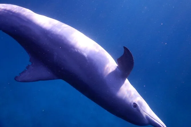 We headed out along the west coast of Mauritius, past Le Morne’s shadow. It wasn’t long before Jean-Luc pointed out a cluster of spinner dolphins — he called them “les acrobates” — twisting through the water like they were showing off just for us. I tried sliding into the sea (awkwardly, if I’m honest), and for a second I could hear nothing but my own breath and these high clicks from somewhere below. We swam close but didn’t chase; Jean-Luc kept reminding us it’s their home, not ours. That stuck with me.