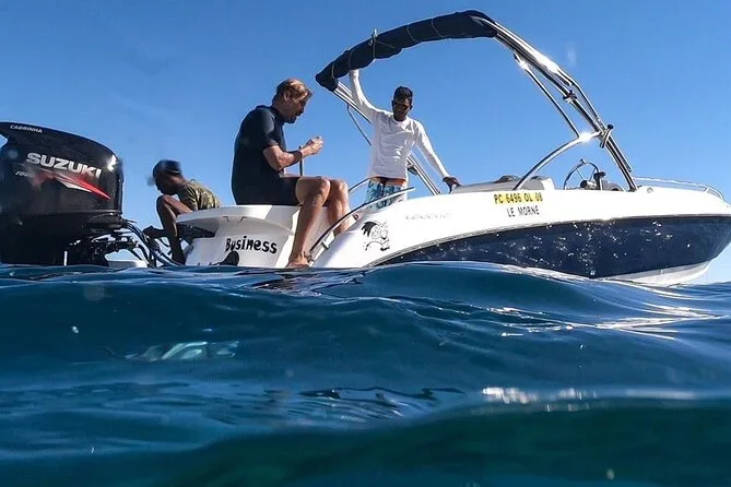 I was still rubbing sleep from my eyes when we met our guide, Jean-Luc, right by the Emba Filao restaurant. He gave this little wave — not rushed, just patient — and led us across the cool sand to the boat bobbing in that weirdly soft morning light. The sea felt almost too calm, like it hadn’t decided to wake up yet. I remember thinking I’d never seen water so glassy. There were only a few of us, which made everything quieter somehow.