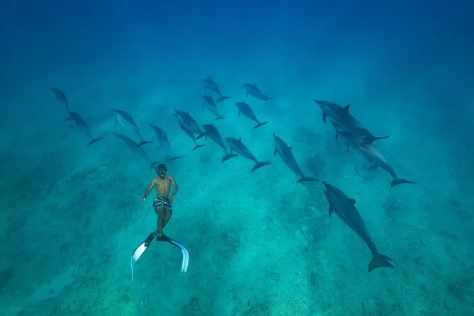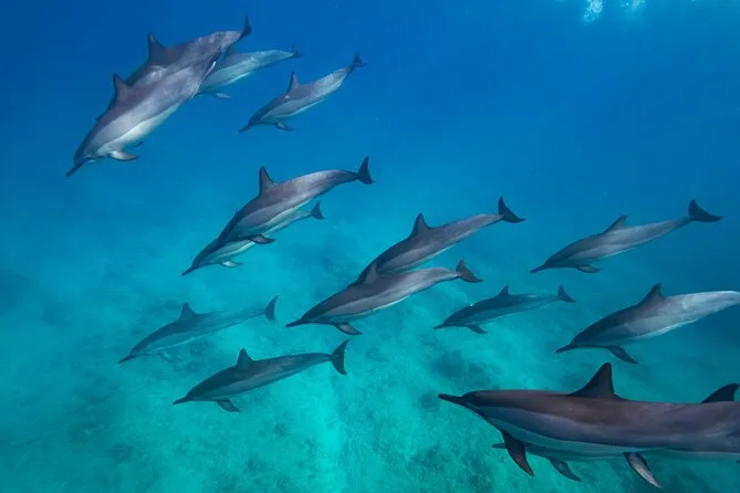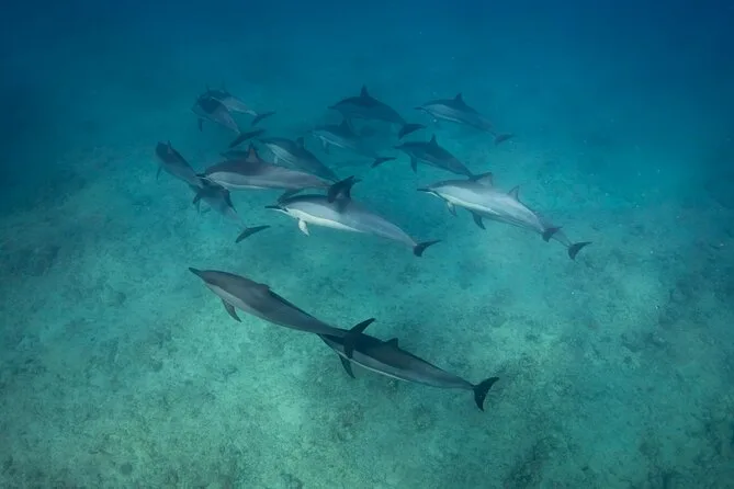 You may see spinner dolphins and bottlenose dolphins; sightings vary as they are wild animals.