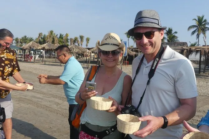 We stopped at a floating patch of wildflowers—Luis called it a “natural garden.” It’s quiet out here, just the hum of insects and the occasional splash. After drifting for a while, we reached a small AfroMex village. Kids waved as we passed; someone was grilling fish nearby, and you could smell it mixing with wood smoke. Lunch was simple—grilled fish with lime, or chicken if you wanted, plus homemade tortillas. If you’re vegetarian, they’ll whip up something fresh—just let them know ahead. Later, we visited a turtle camp right on the sand. I got to hold a tiny hatchling—its flippers twitching—before setting it down and watching it scurry toward the Pacific. Last stop: a new crocodile farm tucked behind some palms. The crocs are bigger than you’d expect up close, but the staff knows their stuff and keeps everyone safe. We headed back with sandy feet and more photos than I’d planned to take.