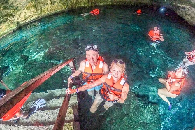 You’ll float beside wild turtles at Akumal Beach, then slip into cool cenote waters surrounded by jungle sounds and ancient stone. With a local guide leading the way and transport included from Tulum or Playa del Carmen, it’s easy to just be present — whether you’re counting turtles or staring up at sunlight drifting through cave ceilings.