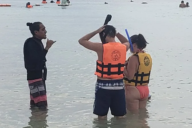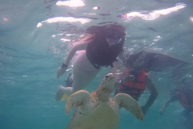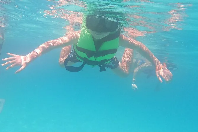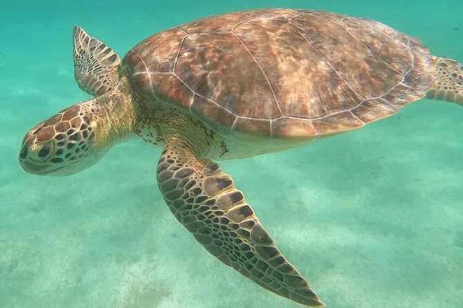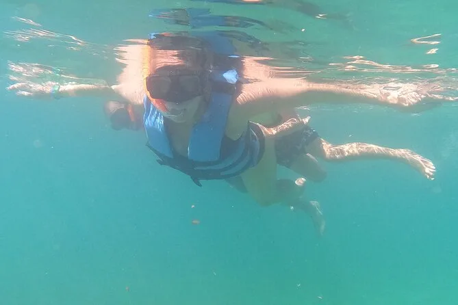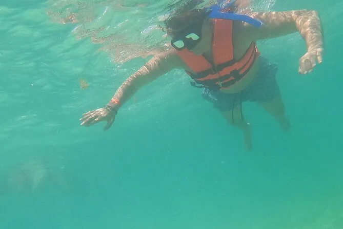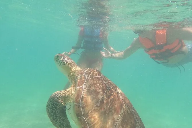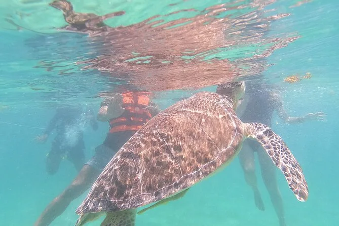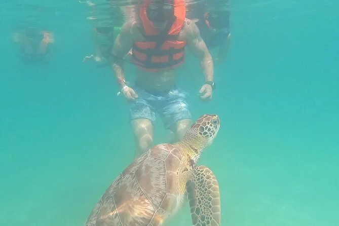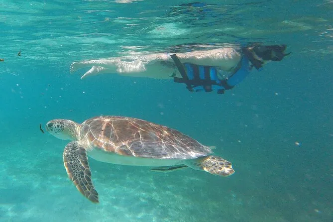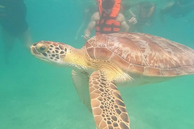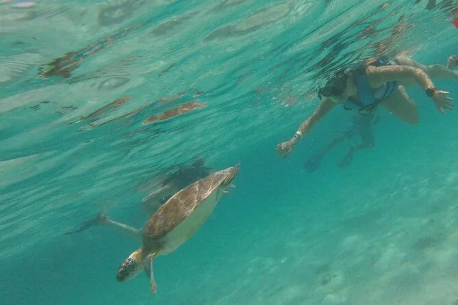 I didn’t expect how quiet it would feel once we dipped below the surface. Just muffled waves and my own breathing echoing back at me. Then—out of nowhere—a big green sea turtle glided past, totally unbothered by us drifting above. Miguel pointed out how they munch on seagrass right there in the shallow bay, about two meters deep. He reminded us not to reach out or chase them (which honestly felt right). There were a few other swimmers around but it never felt crowded—maybe because it’s a private tour and Miguel knows when to avoid busy times.