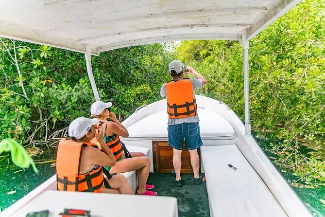 Your day includes a small-group cruise on eco-friendly boats with safety equipment provided; three beers per adult plus fresh seasonal fruit and natural drinks served onboard; guided visits to stromatolites, Isla de los Pájaros, Pirates Channel, and Cenote de la Bruja; plus access to beach club facilities or kayaks when you return to port.