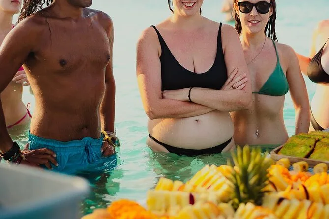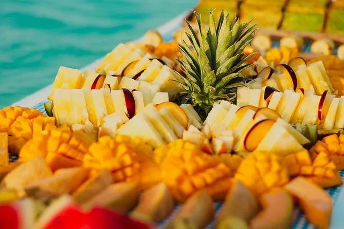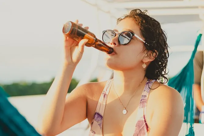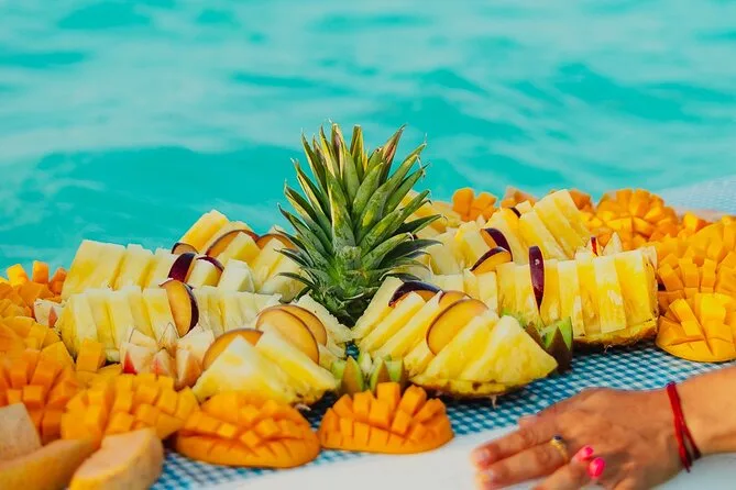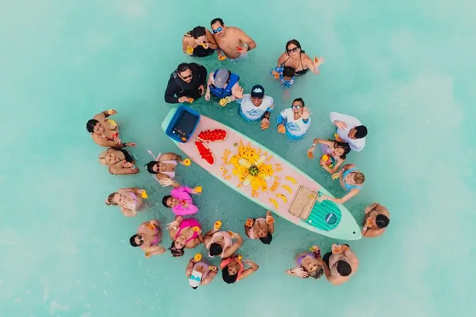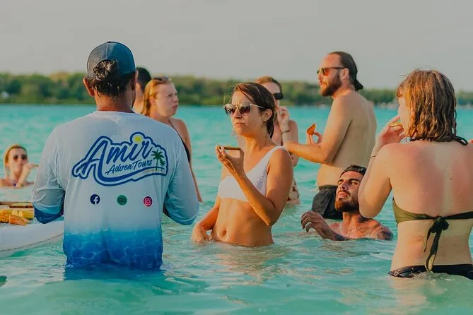 Your day covers four hours on a manual-powered boat exploring Bacalar Lagoon’s cenotes—Black Cenote (Cenote de la Bruja), Emerald Cenote and Cocalitos—with plenty of time for swimming at Pirate's Channel and Bird Island. You’ll have an open bar stocked with beer and tequila plus soft drinks and juices; fresh seasonal fruits for snacking; all safety equipment provided; parking fees covered; and stories from your certified local guide along every stop before heading back ashore.