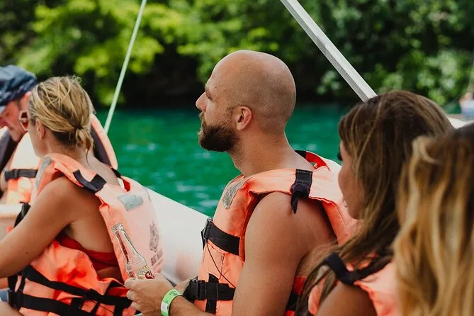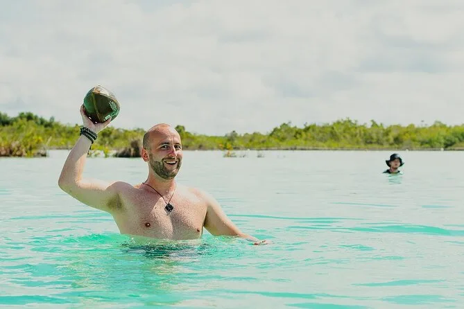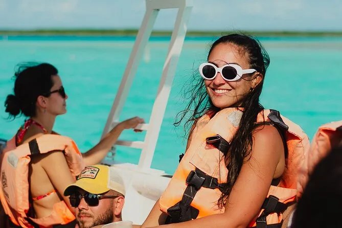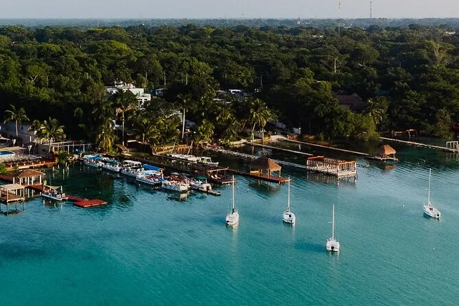 You’ll ride a small boat across Bacalar Lagoon’s shifting blues, swim in cenotes from bright emerald to deep black, snack on fresh fruit under the sun, and float through Pirate’s Channel with an open bar close by. With a local guide sharing stories and space to just soak it all in, it’s more than just sightseeing—it feels like being let in on a secret.