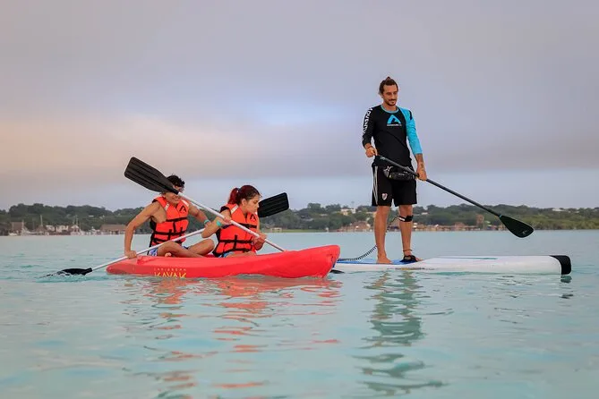 You’ll start your day with fresh coffee on Bacalar’s dock before learning SUP basics from your local guide. Paddle across quiet lagoon waters at sunrise, snack on fruit by Black Cenote, and float through Pirates Canal’s history—all before most folks are even up. You’ll leave with new skills, photos, and maybe a little more peace than you came with.