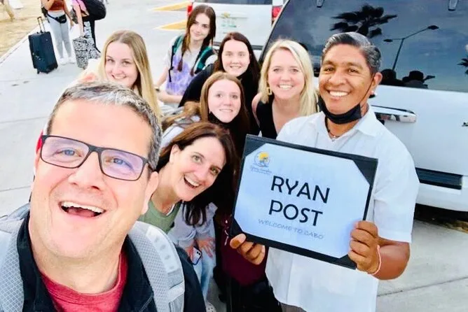 Your transfer includes airport pickup right at umbrella number 10 with your name on a sign, plus a welcome drink—either an ice-cold beer or bottled water—and flexible drop-off anywhere downtown Cabo San Lucas whether it’s a hotel, private house or Airbnb.