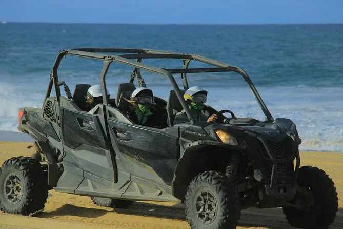 Your day includes transportation from your hotel in Cabo San Lucas by Real Baja Tours van, all safety equipment for off-roading in either double or quad UTVs depending on your group size, purified water throughout, plenty of time for photos by the Pacific surf—and ends with a free tequila tasting before heading back.