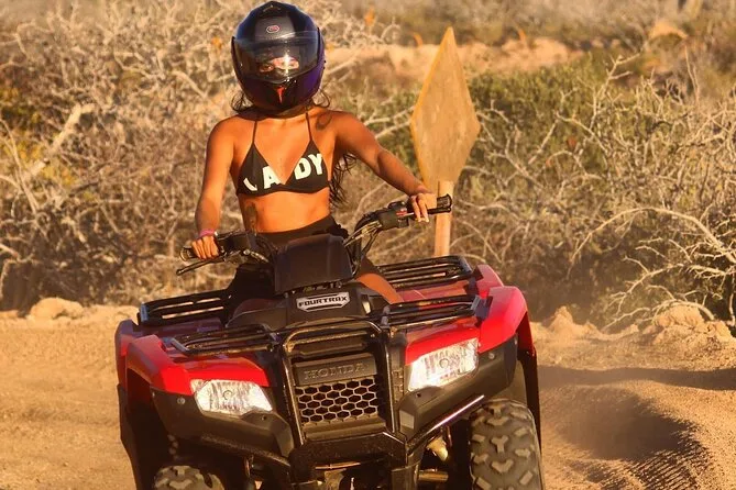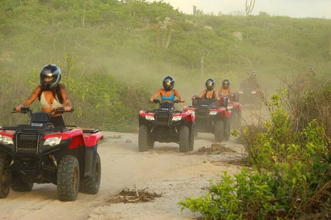 Your day includes air-conditioned pickup from Cabo San Lucas, use of semi-automatic Honda 420 ATVs on exclusive ranch trails with a local guide leading the way, plus two quesadillas and seasonal water served mid-tour before heading back to town together.