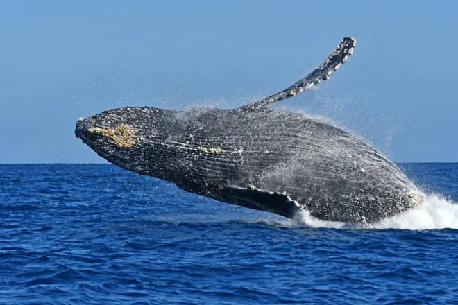 The main season is December through April when humpbacks migrate here to breed and nurture calves.