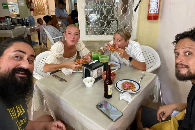 The next stop was this tiny place with faded yellow walls where they handed us salbutes—puffed tortillas topped with cochinita pibil that looked messy but tasted like pure comfort. I tried to say “salbute” properly (Li laughed at my attempt), then loaded mine up with pickled onions and way too much habanero. My mouth burned for five minutes straight but it was worth it. We kept moving—shrimp tacos, beer-battered fish tacos that were crispy outside and soft inside. Our guide knew everyone; she’d wave or joke in Spanish as we passed by, so we never felt like outsiders peeking in.