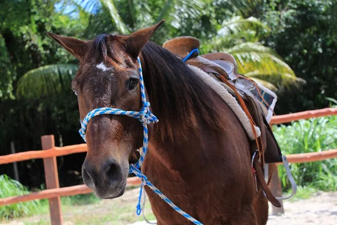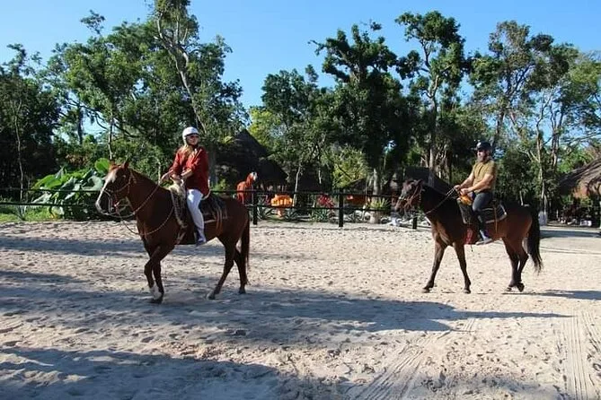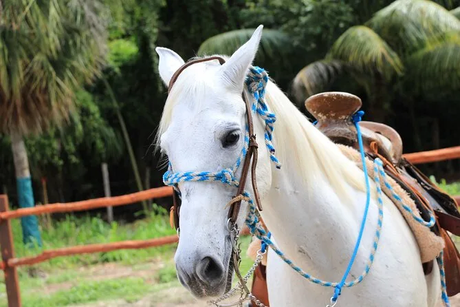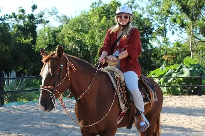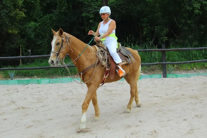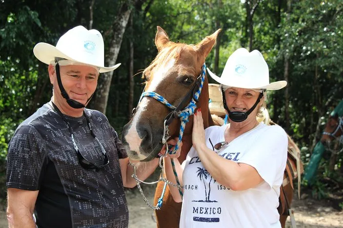 Your day includes hotel pickup and drop-off from Cancun or Playa del Carmen, all necessary equipment for horseback riding and swimming in a cenote, use of lockers and towels so you don’t have to worry about your stuff getting wet or lost, plus bottled water, soft drinks, and tasty snacks at the end before heading back.