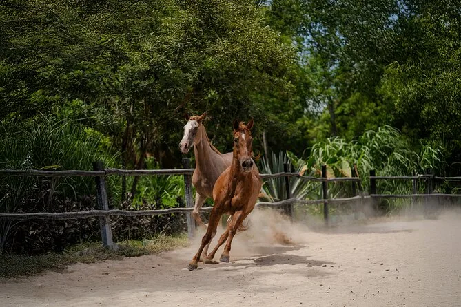 You’ll ride gentle horses through Yucatan jungle trails near Cancun or Playa del Carmen, spot wildlife with your local guide, swim in a cool cenote, and taste real Mayan-style bubblegum in an orchard. Includes hotel pickup, snacks, towels—all you need is your swimsuit and curiosity.