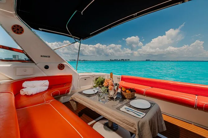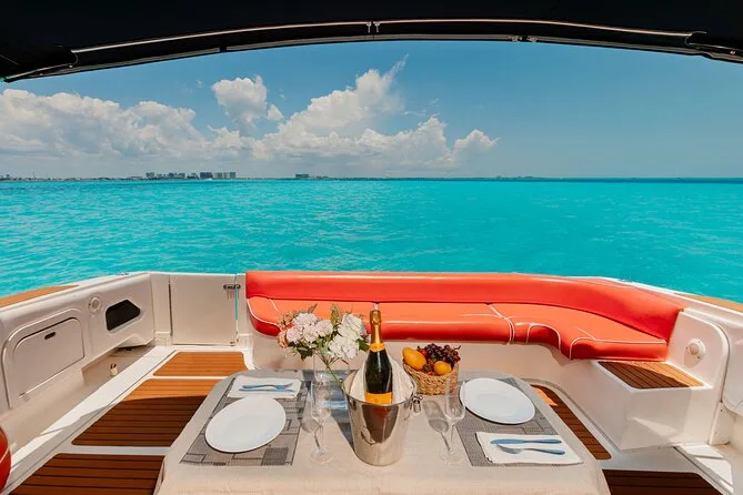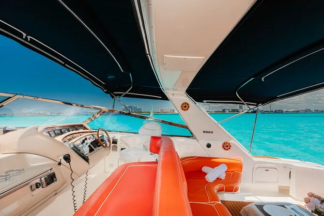 You’ll slip away from busy beaches onto your own 55ft yacht with crew, gliding through Cancun’s lagoon into open Caribbean blue. Swim or snorkel over reefs, paddle board near Isla Mujeres, or just sprawl out on deck with cold drinks in hand. Every moment feels unhurried — you might even forget your phone exists for a while.