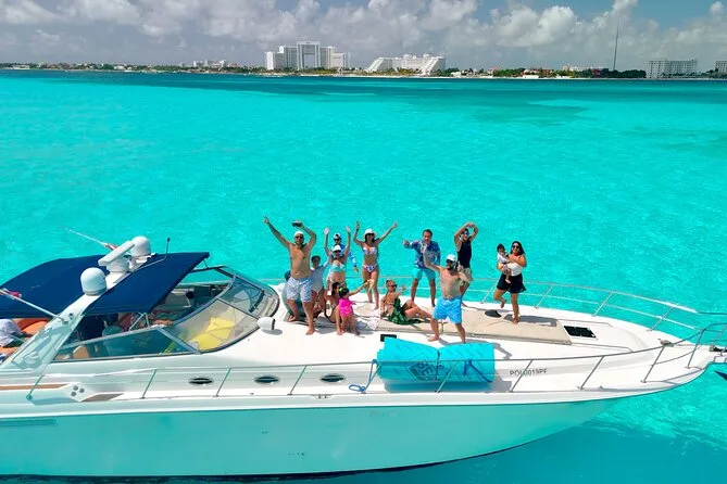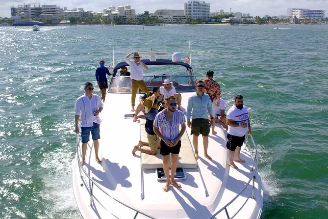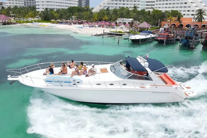 The 4-hour route includes Nichupte lagoon, Bay of Cancun, snorkeling stops or sunken ship visit (weather permitting), Isla Mujeres’ Playa Norte beach, plus coastal cruising.