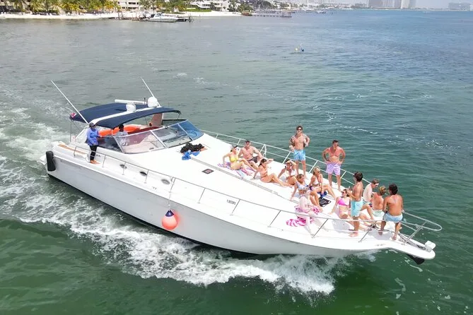 I never thought I’d start my day watching pelicans bob past while we waited at the marina in Cancun — but there we were, sunscreen half-rubbed in, grinning at each other like kids before a field trip. The captain (Miguel? I think so — he had that calm way about him) welcomed us aboard this huge 55ft yacht and just like that, city noise faded behind us. I remember the sun hitting the water so hard it almost looked fake, that cartoon-blue you only see in postcards. We drifted out through the Nichupte lagoon, mangroves on both sides, and someone joked about pirates. Maybe it was just me.