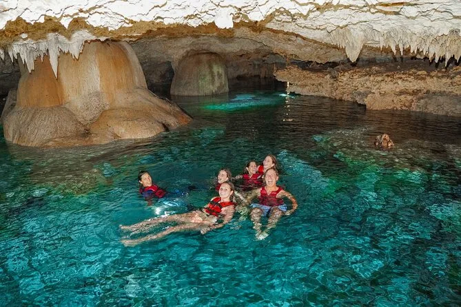 Your day includes hotel pickup from Cancun or Riviera Maya, all entry fees to Akumal and the cenote park, use of snorkel gear and life vest for every swim stop, guidance from a bilingual local expert throughout both land and water parts of the trip, bottled water whenever you need it, plus fresh empanadas served after exploring underground caves before heading back home.