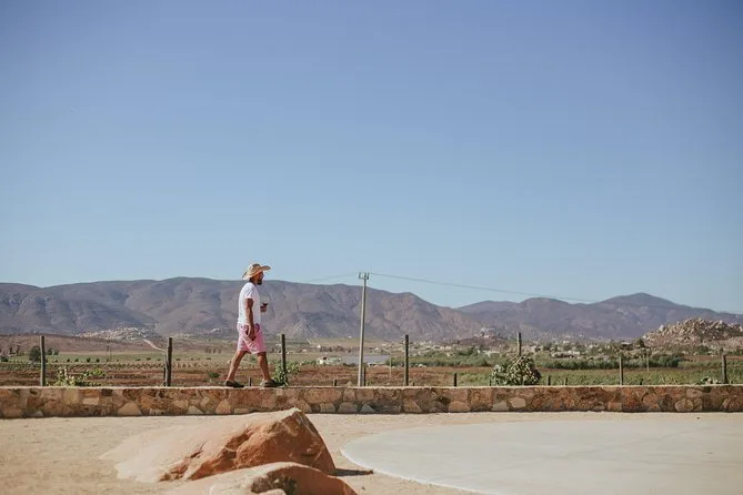 Your day includes tasting five house-made wines in Xecue’s sunlit room overlooking Valle de Guadalupe vineyards—with grilled beef ribs for lunch alongside local cheeses, bread, olive oil and jam. The winery is fully wheelchair accessible and easy to reach by public transport if needed.
