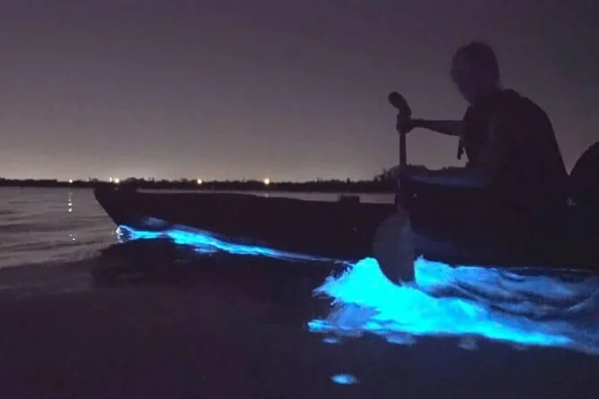 You’ll paddle under a sky crowded with stars from Holbox Island to Punta Mosquito, guided by locals who know every curve of these waters. Wade into darkness where your touch sparks blue light from living plankton — swim or just watch your hands glow. Includes hotel pickup, kayaking gear, bottled water, and all fees for a night you’ll remember every time you see the sea after dark.