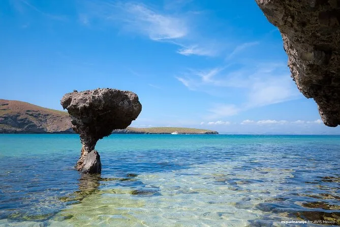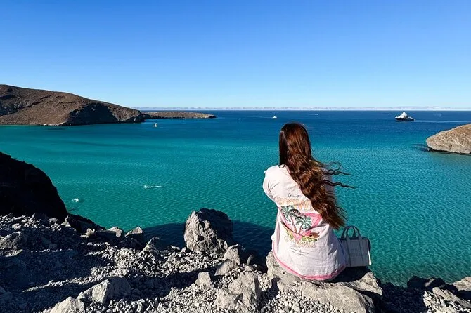 The tour covers a full day including stops at Balandra Beach, Malecón de La Paz, lunch at Mariscos el Paraje, and free time in Todos Santos before returning.