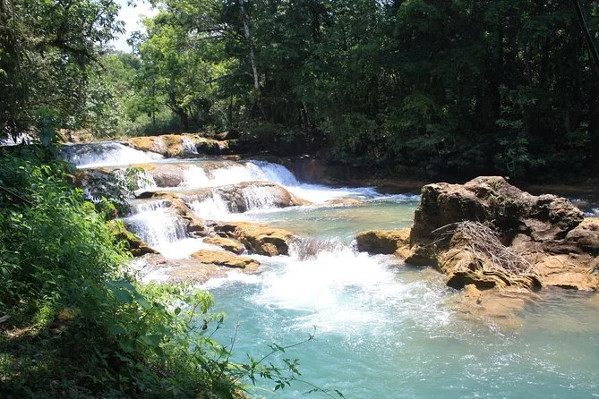 This is a full-day experience including stops at Palenque ruins, Misol-Ha waterfall, and Agua Azul waterfalls.