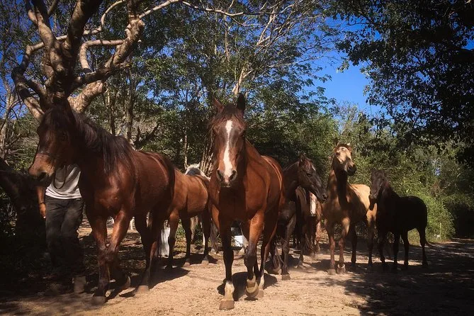 You’ll ride gentle rescue horses through Playa del Carmen’s jungle trails in a small group (max 6), guided by locals who know every twist in the path. Expect snacks before you saddle up (if you go in the morning), water during your ride, and drinks waiting at the ranch when you return — plus plenty of time to connect with both animals and people along the way.