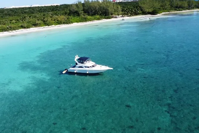 Your day includes pickup at Puerto Aventuras marina by a friendly local crew before setting off on your private 47 ft yacht with use of snorkeling gear and paddleboard. Enjoy an open bar stocked with beer, spirits and juices plus freshly made guacamole with chicken fajitas or shrimp ceviche served onboard before returning to port after four hours on the water.