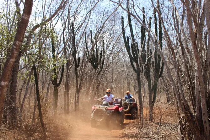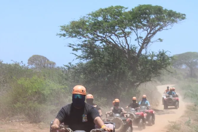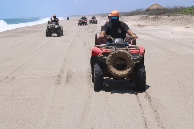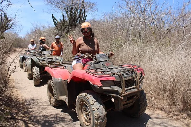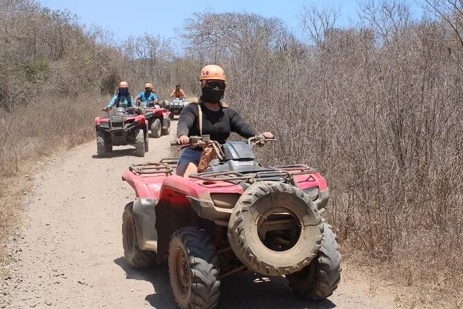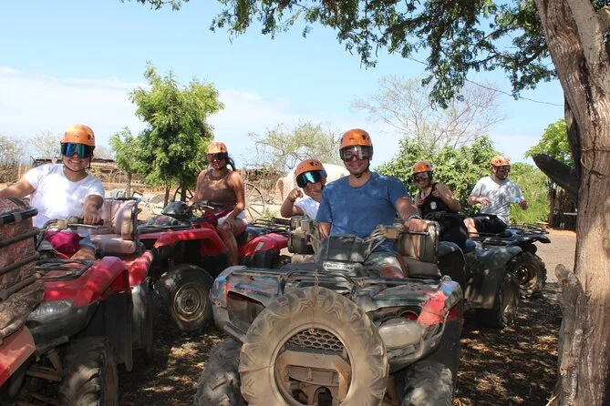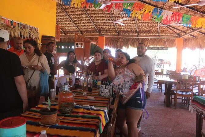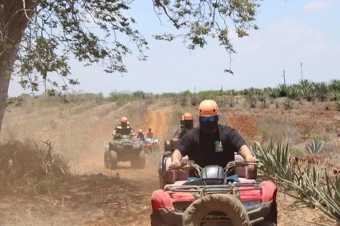 Your day includes private transportation with pickup at your accommodation in Puerto Vallarta, use of an ATV for riding through jungle trails and along the beach with a local guide leading you past agave fields and streams; plus tequila tasting right at Mr. Lionso’s ranch and a regional lunch featuring fresh tortillas and local specialties before heading back home.
