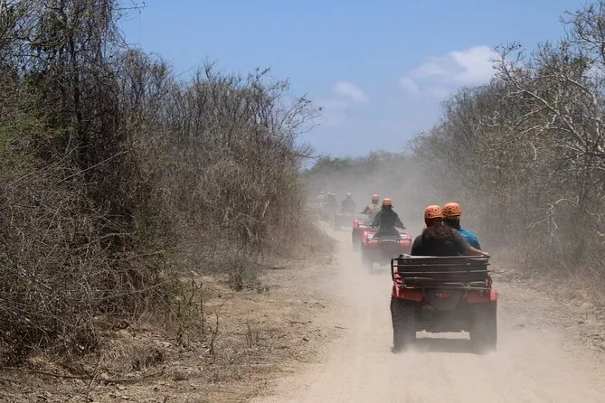 “You’re not going to crash it, just go slow,” our guide Luis grinned as he handed me the helmet. I’d never driven an ATV before — my hands were already sweaty, but the air smelled green, like wet leaves and earth after last night’s rain. We set off bumping along the trail, engines humming louder than I expected, and suddenly we were out of town, just jungle all around. The light kept shifting through the trees, sometimes blinding for a second, then cool again. I tried to keep up with everyone else but got distracted by a bright blue bird darting across the path — almost missed a turn there.