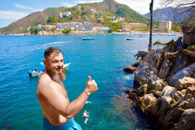 “You sure you want to jump from there?” That’s what our guide Marco asked me, grinning like he already knew the answer. We’d just pulled up to this wild little cove near Mismaloya, the old movie set ruins poking out behind us. The boat rocked gently and the sun was already hot on my shoulders — I could smell sunscreen and salt, hear someone laughing in Spanish behind me. I hesitated at the edge, then just… went for it. The water hit colder than I expected. My heart was pounding but I came up grinning too. Not everyone jumped — some folks just watched from the boat or floated in the blue water below. No pressure either way.