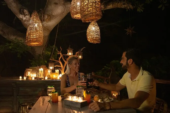You’ll sail from Puerto Vallarta across Banderas Bay at sunset, sipping drinks as the sky changes color. Dine by candlelight on Las Caletas beach before following torch-lit paths into the jungle for ALMA—a live show of dance and music that feels both ancient and new. Expect laughter, ocean air, and something you’ll remember long after you’re home.