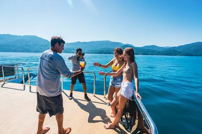 Your evening includes premium open bar service with cocktails and non-alcoholic drinks from departure onward; fresh guacamole with blue corn chips; authentic Mexican ceviche made with local fish; friendly crew service throughout; plus flexible meeting point or pickup options arranged before booking for easy boarding in Puerto Vallarta.