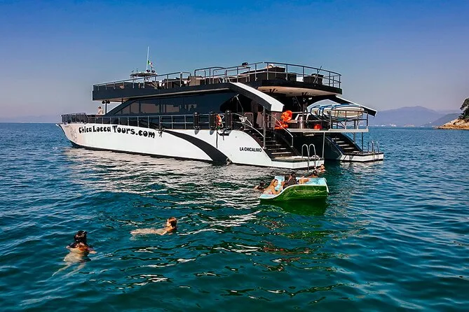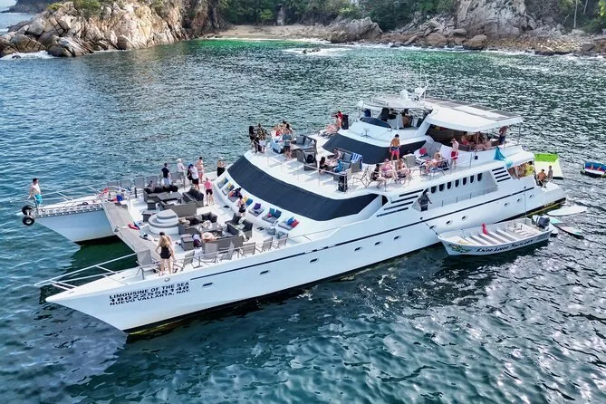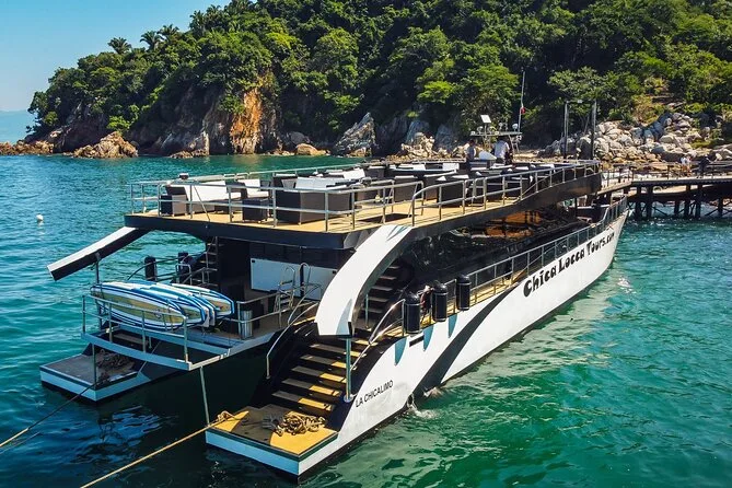 You’ll board a mega yacht in Puerto Vallarta for a day trip packed with swimming, snorkeling, and paddle boarding in Banderas Bay before heading to Yelapa’s car-free streets. There’s a guided walk to its waterfall (bring sandals), lunch delivered by boat, plus an open bar all day long. It’s relaxed but lively — you’ll leave sun-kissed and probably still humming someone else’s playlist.