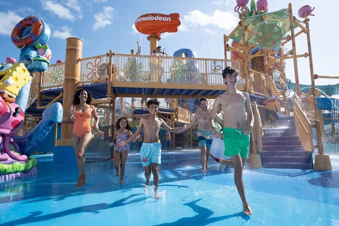 You’ll laugh your way through slides and rivers at Aqua Nick in Riviera Maya—with snacks, drinks, towels, and easy pickup included. Try burgers or poke bowls at Aqua Bite stands while kids explore splash zones or meet Nickelodeon characters. Expect real family chaos, friendly staff, and that feeling of sun-warmed skin as you float along under palm trees.