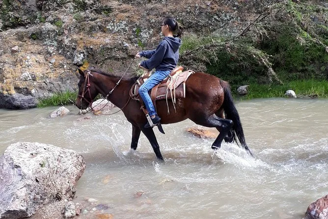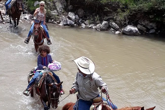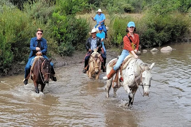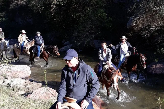 Your day includes about 2.5 hours of horseback riding through rivers and canyons near San Miguel de Allende with professional guides and local cowboys by your side. Afterward you’ll share an outdoor Mexican ranch meal at the ranch itself—plus rain ponchos are available if needed along the way.