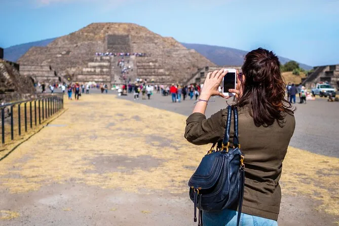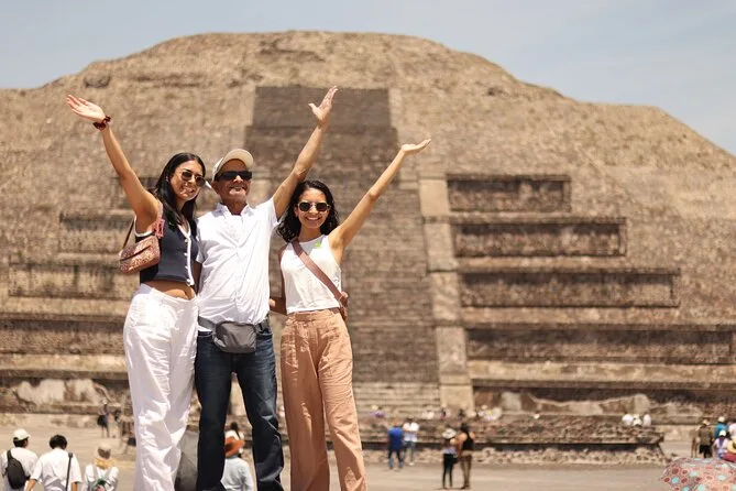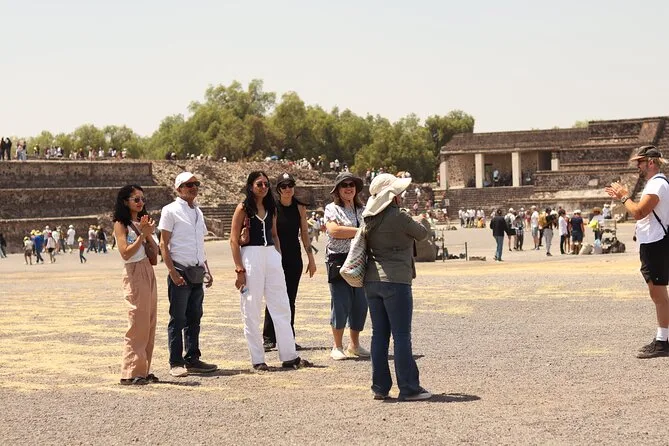 Yes—a local guide leads you through key sites at Teotihuacan as part of the full package.