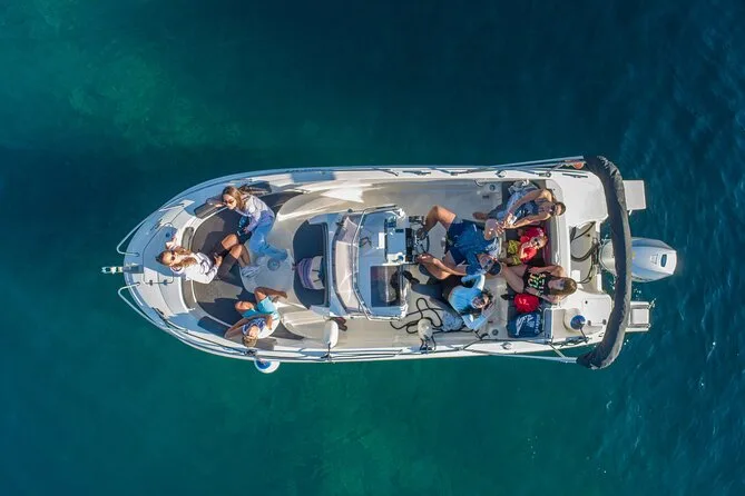 Your day includes all fuel costs, water for drinking along the way, raincoats if needed (even if you think you won’t), insurance coverage for peace of mind, life jackets for everyone on board, music playing softly in the background sometimes drowned out by laughter or waves, plus all swimming equipment provided at the Blue Cave and a licensed English-speaking skipper who doubles as your storyteller for every stop.