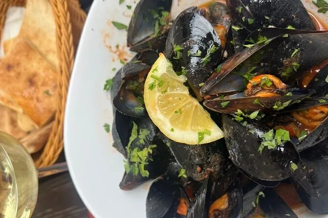 Your day includes meeting your professional guide in Kotor Old Town for a walk through historic streets and squares before sampling local prosciutto, cheeses, olives and brandy at the marketplace (or alternative spot if afternoon). You’ll sit down for lunch featuring homemade sauces with bread and olive oil plus mussels in buzara sauce paired with Montenegrin wine or beer—and there’s always time for coffee or juice if you prefer something non-alcoholic.